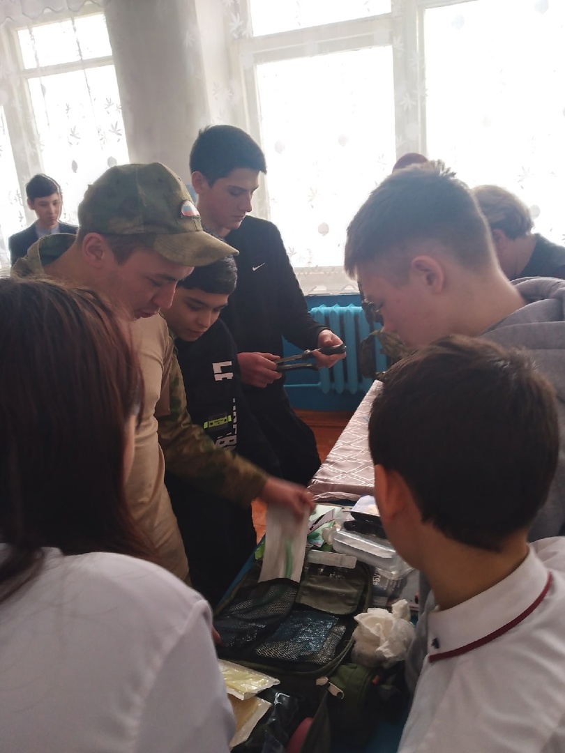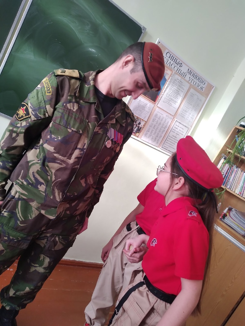Сегодня в нашей школе состоялась встреча с участниками СВО старшим сержантом Радиком Янышевым, капитаном Станиславом Леоновым, старшим сержантом Максимом Вязовцевым. Ребята рассказали о военном деле, об обмундировании и режиме военных и солдат. Показали фильм о подготовке солдат. Обучающиеся задавали интересующие их вопросы. Также участвовали на мастер - классах по оказанию первой помощи, правильному ношению военного обмундирования. Особенно детей заинтересовали ордена и медали Максима Вязовцева.